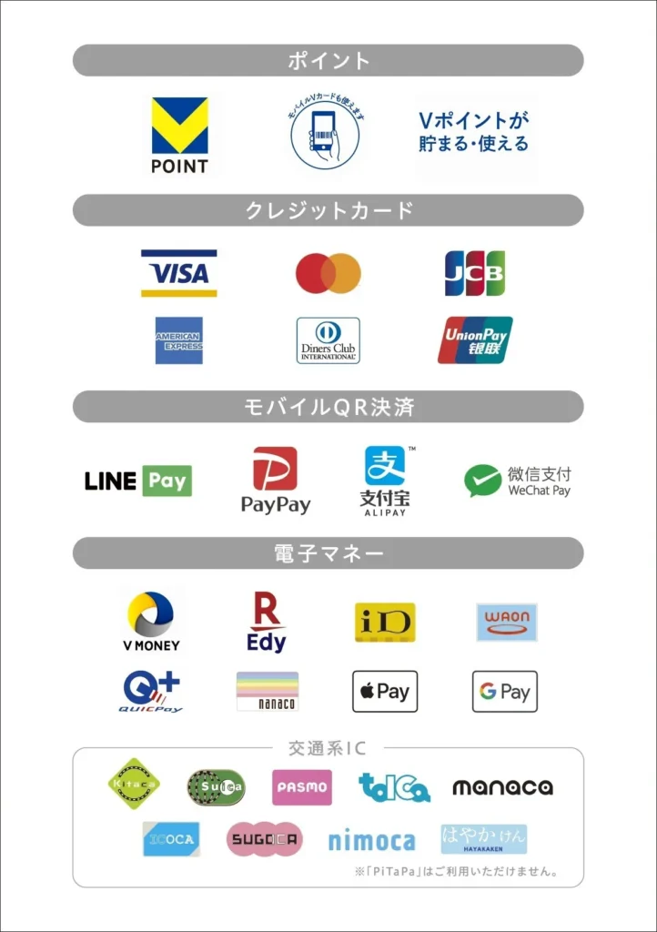 領収書の発行およびVポイントカードのご利用にも対応しております。